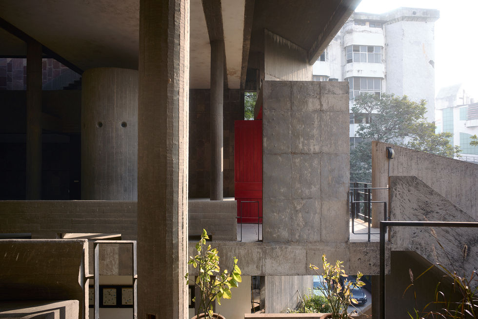 The Mill Owners’ Association Building in Ahmedabad was designed by Le Corbusier in the early 1950s as the headquarters for a textile industry association, completed around 1954. It exemplifies modernist architecture adapted to a tropical climate, with exposed concrete, deep brise-soleil sun-screens, and open, flexible interior spaces. The building’s design responds to wind and light while framing views of the surrounding landscape, and it is recognized as an important early work in Le Corbusier’s Indian projects.